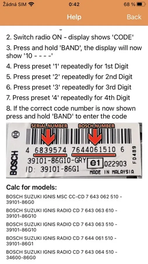 Calc CODE for radios SUZUKI IGNIS and SUBARU JUSTY G3X - BOSCH BLAUPUNKT.