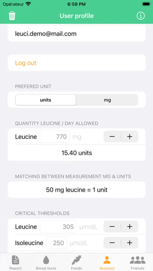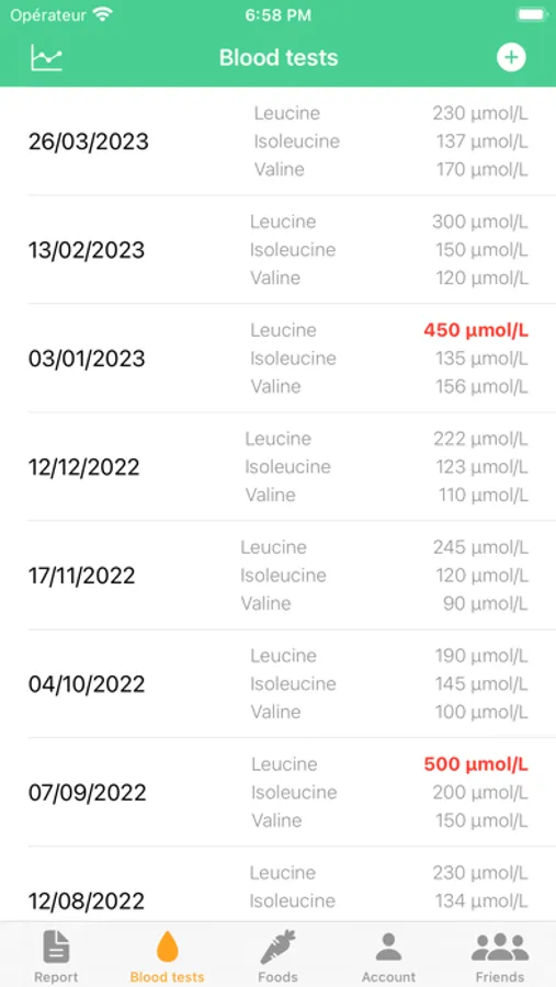 - Blood test report : Users can input their blood test results to track the changes in their leucine levels over time.