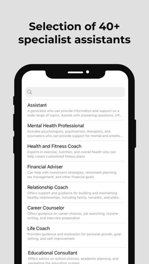 Do you ever find yourself needing expert advice or assistance, but don't know where to turn? Meet the AI-assistant chatbot powered by the ChatGPT model. This innovative technology allows users to select a virtual assistant from various fields and receive personalized answers to their questions. Whether you need guidance in coaching, law, technology, cooking, workout program, or more, our virtual assistants are ready to help.
