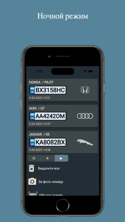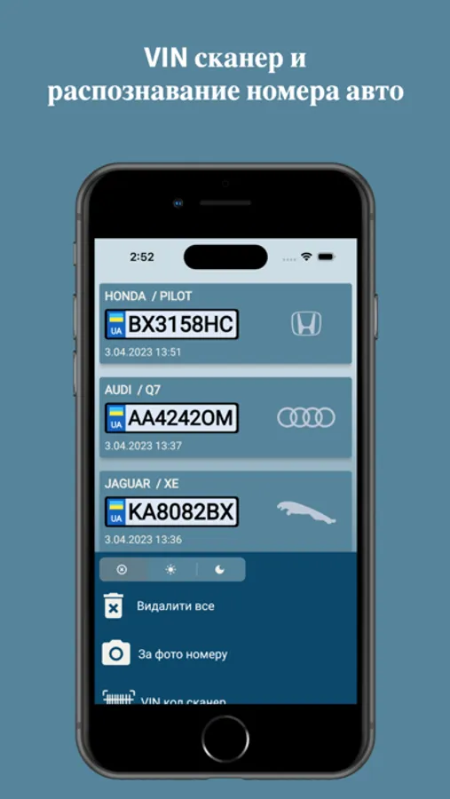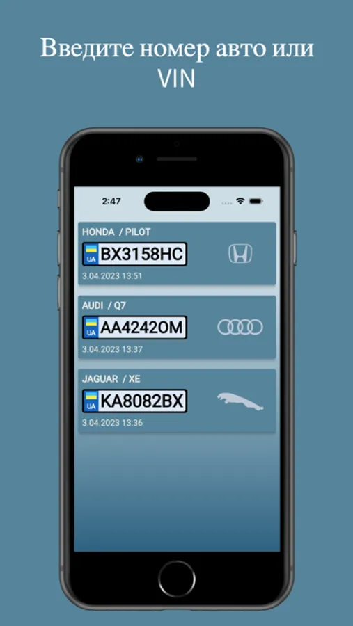 Мы предоставляем полную и бесплатную проверку автомобиля без скрытых полей и дополнительных требований. Чтобы получить точный и подробный отчет о зарегистрированном в Украине транспортном средстве, воспользуйтесь нашим приложением для проверки авто по номерам. Просто введите номер машины или VIN код и нажмите поиск. Также вы можете воспользоваться встроенной функцией распознавания номера - наведите камеру на номер авто и приложение автоматически распознает номер на фото.