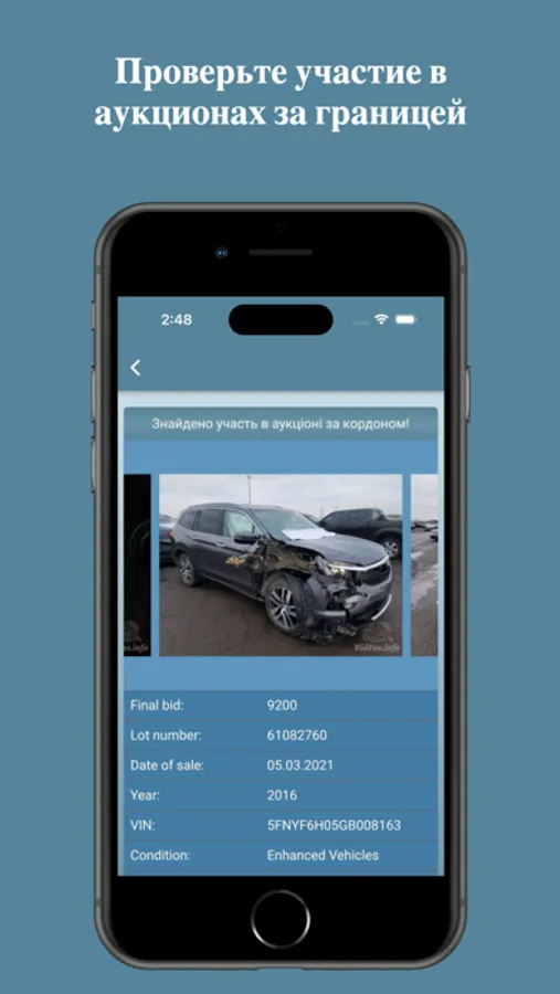 Проверка автомобилей, ввезенных в Украину, на участие в зарубежных аукционах