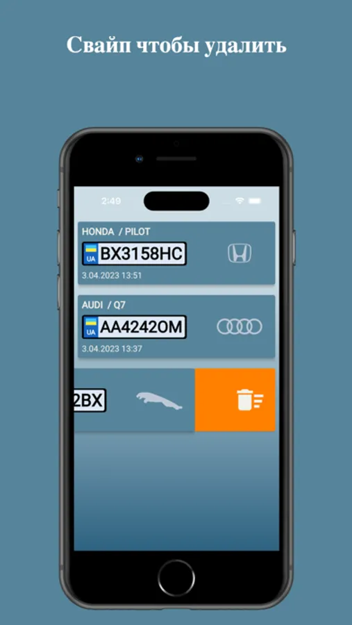 Чтобы удалить табличку с проверенным авто, просто свайпните по ней. Также есть возможность удалить все предыдущие проверки вместе.
