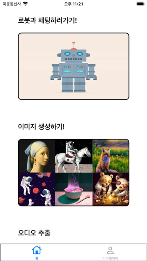 홈화면 ⓒ https://kr.freepik.com/free-vector/chat-bot-concept-illustration_13317063.htm#query=봇&position=16&from_view=search&track=sph