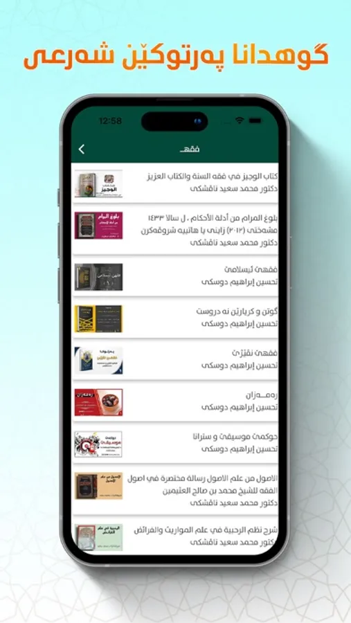 دوو: پەرتوكخانە، ل ڤى بەشى مە پتر ژ 200 پەرتوكێن ئاينى يێن هەمە جور ب بادينى يێن كرينە تێدا دگەل بەرگێن وان ب شێوێ