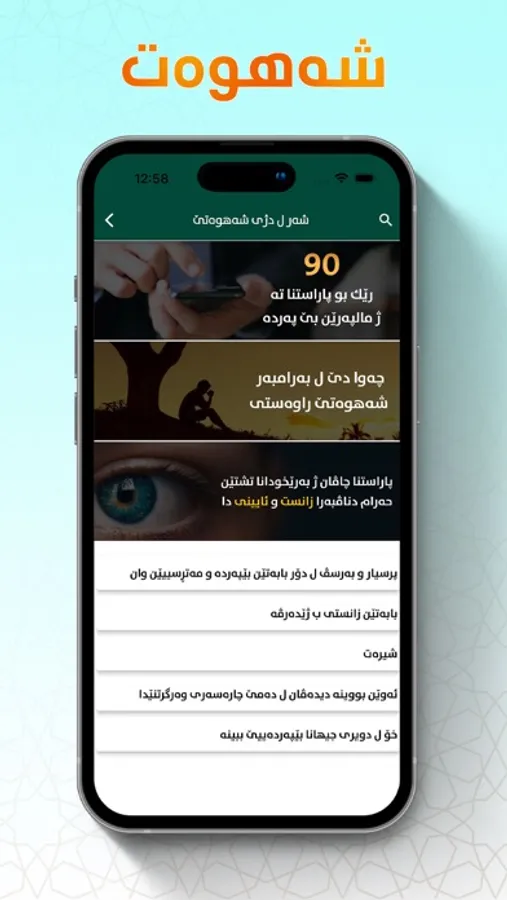 سێ: بەشێ گوهداريا پەرتوكێن شەرعى ، كو ل ڤى بەشى تو دشێی گوهداريا پتر ژ 100 پەرتوكێن دى يێن شەرعى بكەى وەكى عەقيدە و تەفسير و فقهێ ئيسلامێ و فەرموودە و چەندين بابەت و زانستێن دى يێن شەرعى.