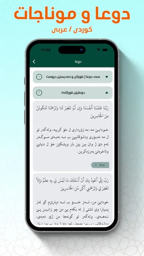 حەفت: دوعا : ب سەدەها دوعايێن دڤى بەشى دا ب زمانێ كوردى و عەرەبى ، ژ وان دوعايێن كو دقورئانێ دا يان ژى د حەديسێن صحيح دا هاتين. دگەل موناجاتان ب زمانێ كوردى.