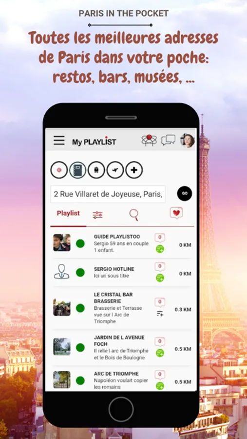 Paris In The Pocket, c'est … tout Paris dans une application, sur ton Smartphone, dans ta poche (… ou ton sac, c'est selon). Des adresses, des reportages, des contacts, des playlists, des guides, … pour rester connecté avec Paris à tout moment.