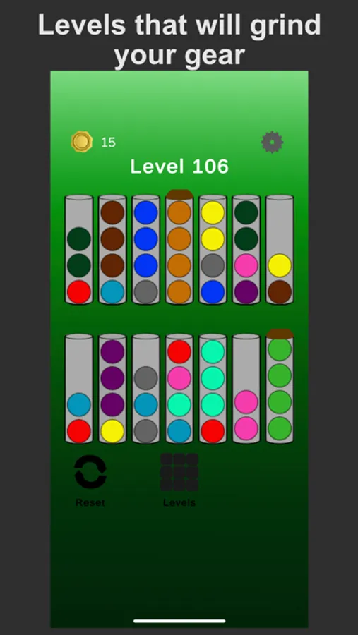 -Tap a single tube to move the ball at the top above the tube, then choose another tube to move that ball and balls with the same color along with it.