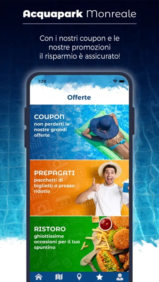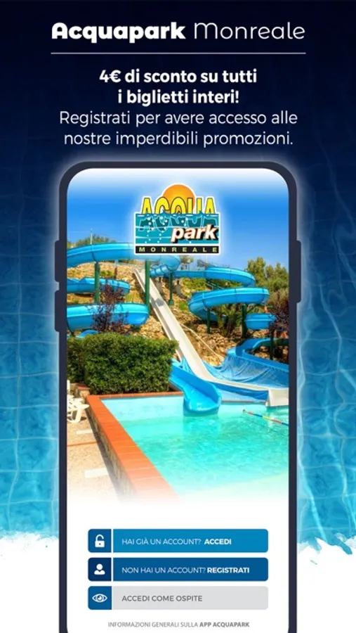 Acquapark Monreale. Con l’App ti conviene! Sconti, coupon e promozioni, sugli ingressi o al bar. Vuoi risparmiare? Scarica l’app! Attrazioni, orari, prezzi, contatti, indirizzo, news. Tutto ciò che serve dentro un App sul tuo telefono.