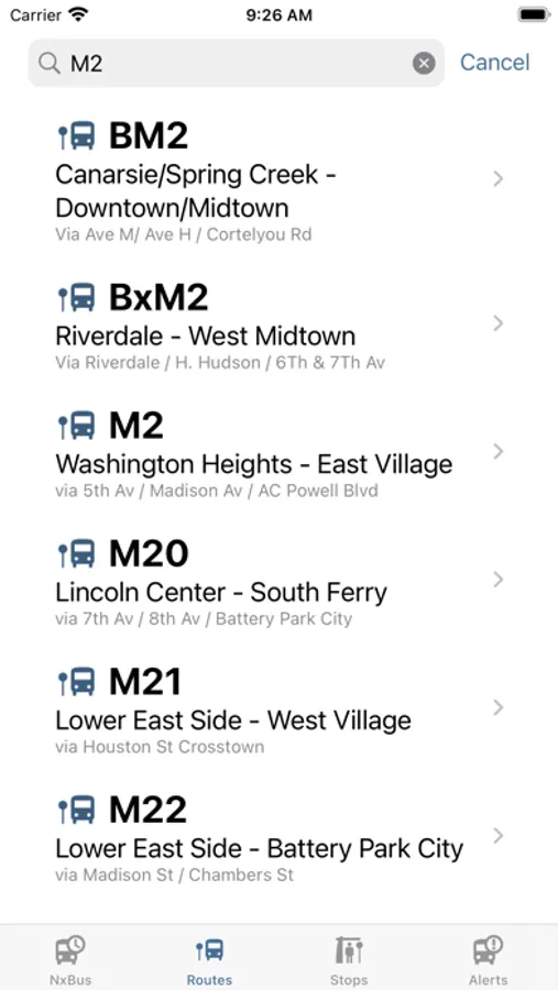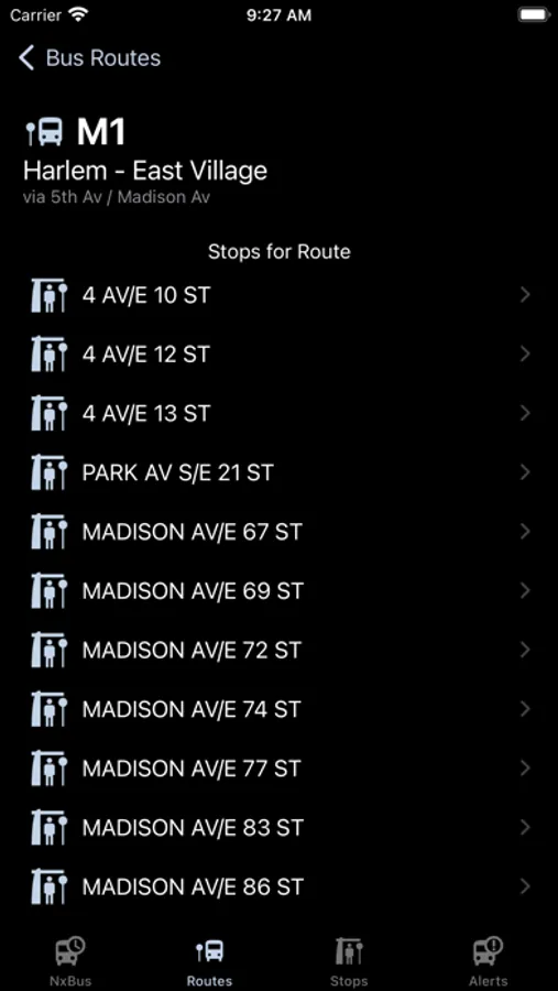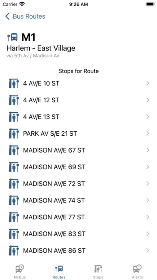 NxBusNY will show predicted New York City MTA bus arrival times for the nearest bus stop, bus route, or bus stop / bus route you choose.