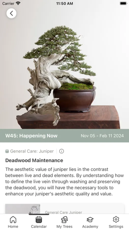 Mirai Mobile is THE destination for learning how to grow bonsai trees. As the FIRST and ONLY personalized bonsai guide, we use short-form videos and tutorials to walk you through fundamental bonsai care and the techniques that advance your bonsai practice. From first time bonsai beginners to the most advanced bonsai practitioners, Mirai Mobile customizes your experience to teach you what you need to know when you need to know it. Precisely timed notifications alert you to work you can perform on the bonsai trees in your collection with timing tailored to your growing region anywhere in the world. Species specific calendars provide step-by-step instructional videos telling you what to do with the bonsai in your collection throughout the year. Mirai Mobile’s robust gallery tracks your trees and documents their progress allowing you to review history and plan for the future. Detailed courses explain the why of bonsai care and cultivation, deepening your knowledge and enhancing your understanding. With Mirai Mobile we’ve taken the guesswork out of bonsai so you can focus on creating healthy, beautiful trees.