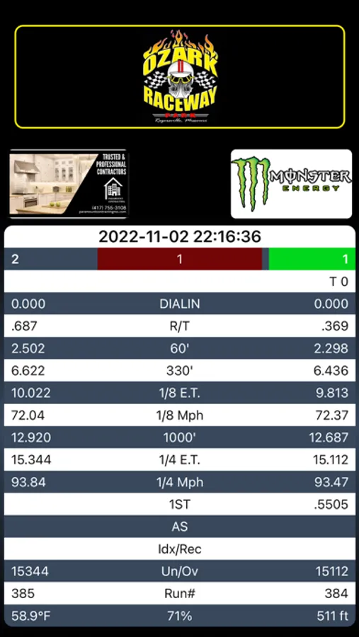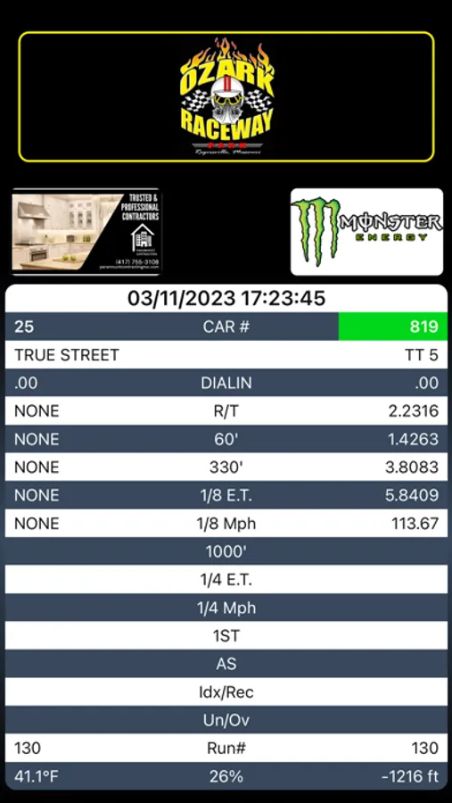 Drag racing Time slips from Ozark Raceway Park race tracks are currently printed using a receipt printer at the race track. This app shows the same time slips information on your phone.