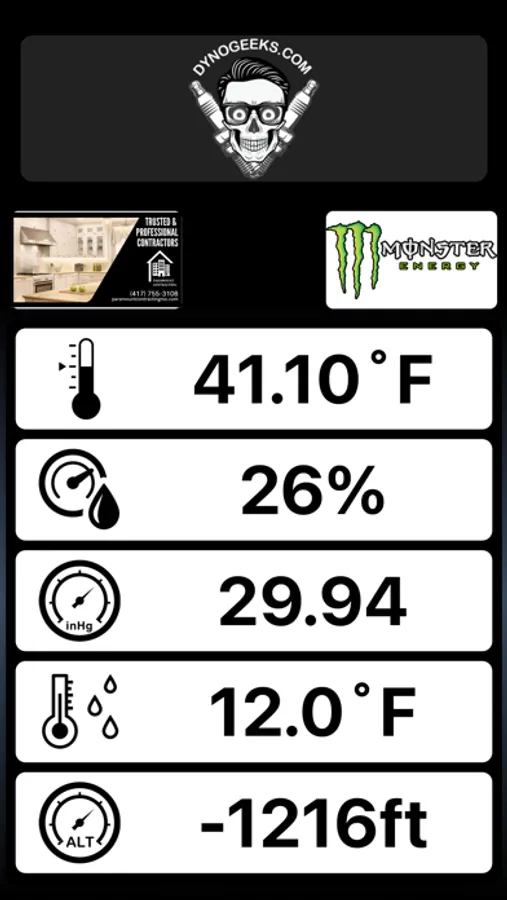 The app shows the weather station information and calculate the Density Altitude automatically to help the racers to tune their engines before racing. A first in the industry.