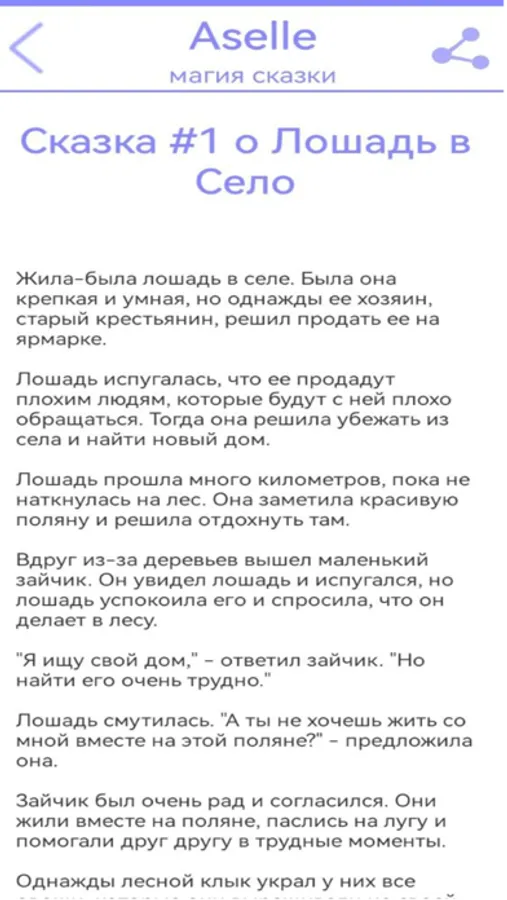 The application "Aselle" was created to give children and their parents a fairy tale. You can create a fairy tale in 1 minute and read it to your child on the road or before going to bed.