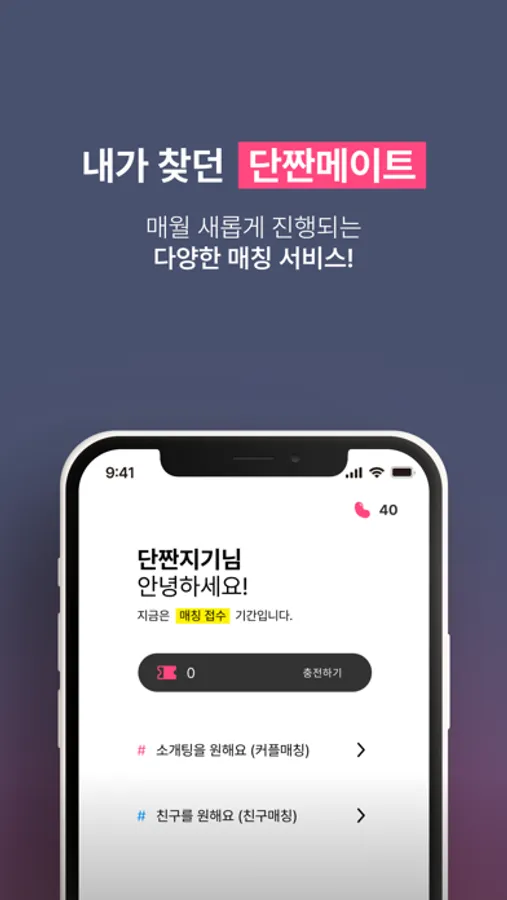 · 매칭은 무조건 커플만? 성별과 상관없이 다양한 친구들도 매칭해드리는 친구매칭 서비스를 제공해드려요.