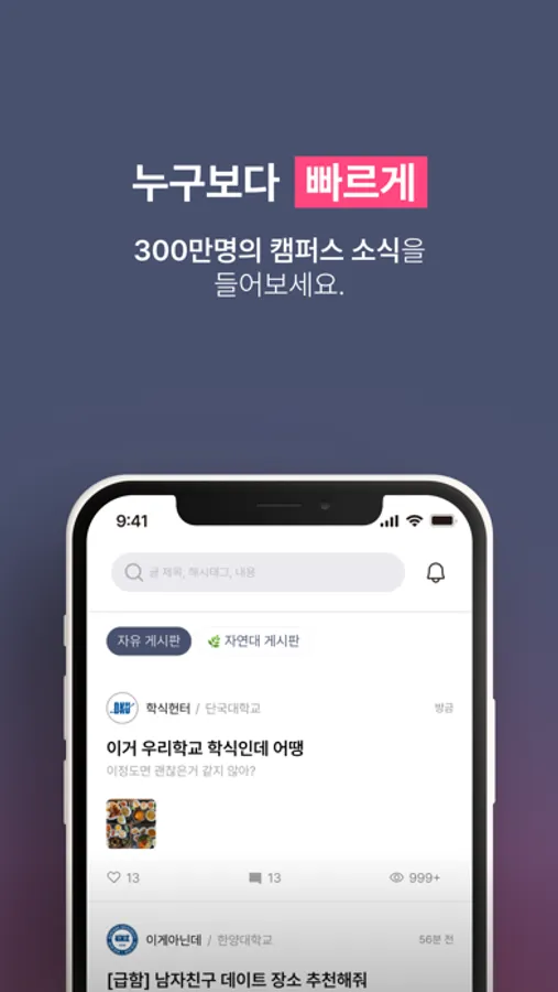 ● 300만명의 캠퍼스 소식을 들어보세요. 커뮤니티