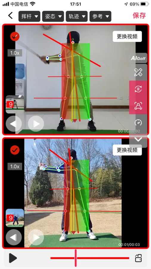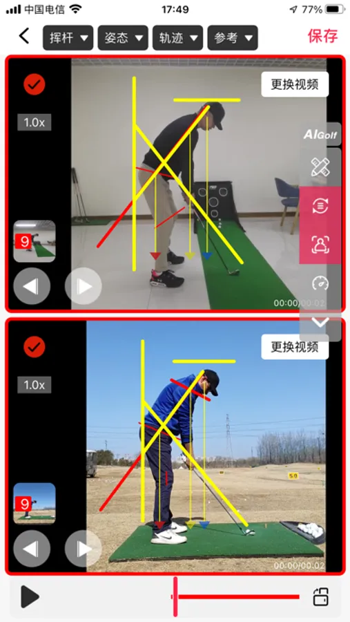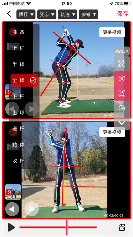 AIGolf is an intelligent golf swing motion analysis software. By capturing or uploading valid golf swing motion videos, it can automatically recognize key swing motions and perform intelligent motion analysis. It provides a variety of intuitive and easy-to-use analysis and comparison functions. The main functions include: skeleton diagrams, fishbone lines, body rotation, body trajectory, swing space, trunk shift, front/side stance, and many other multidimensional reference indicators. It also provides a two-person motion posture comparison function, allowing frame-by-frame synchronized viewing and slow motion playback. Through the analysis tools, differences and problems can be quickly identified, resulting in more intuitive and clear effects, helping you quickly and effectively improve your swing motion and enhance the overall stability of your swing.