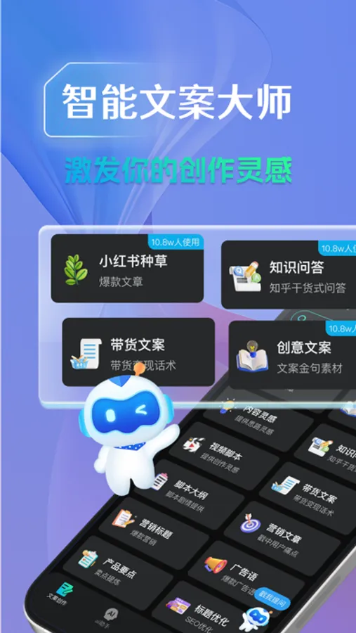写文案:广告文案、产品文案、各个文案都可以快速出稿!