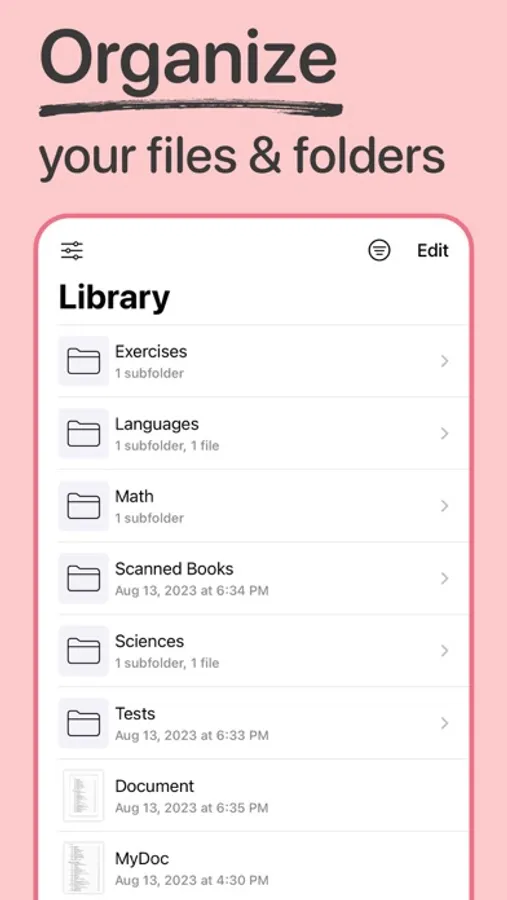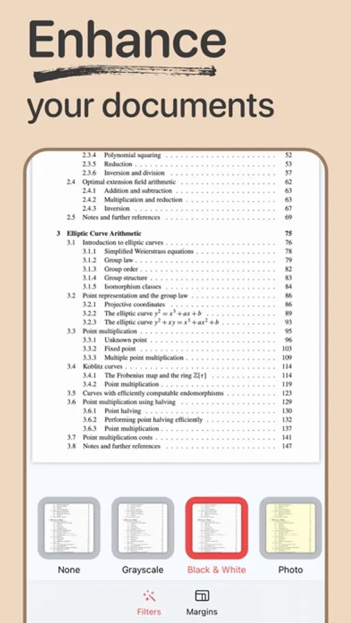 • Page Editor: enhance documents, black & white filter, perspective correction, page rotation and margin edit