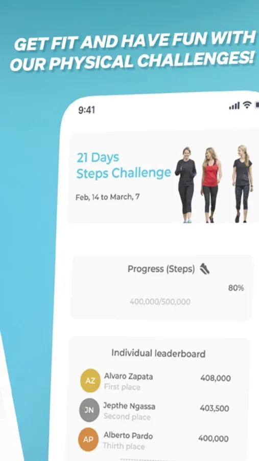 - Challenges and Leaderboards: Friendly competition at its best! See how you stack up against your colleagues in various fitness challenges, and climb the leaderboard while cheering each other on!
