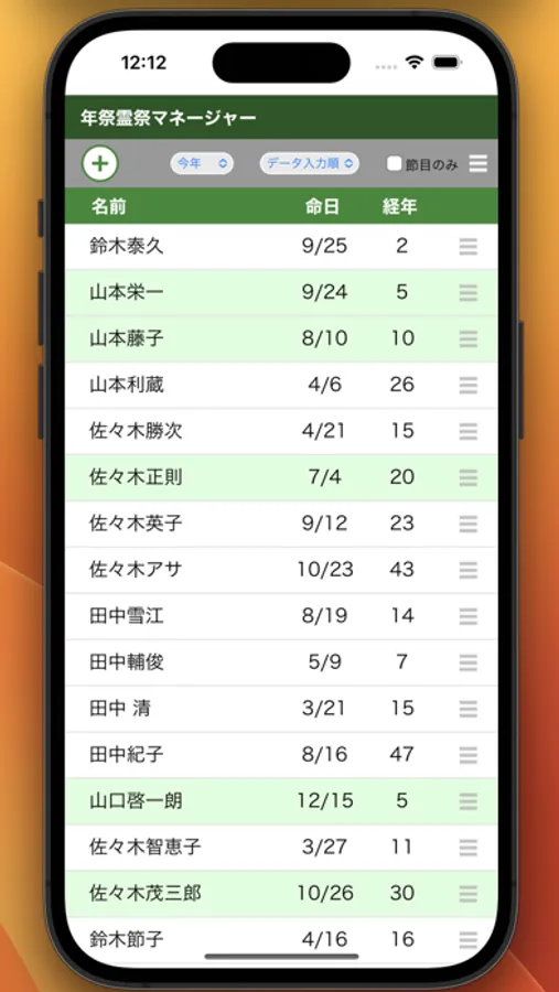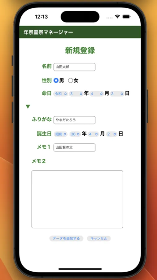 詳細情報として、ふりがな、誕生日、メモ1、メモ2の情報が保存できます。