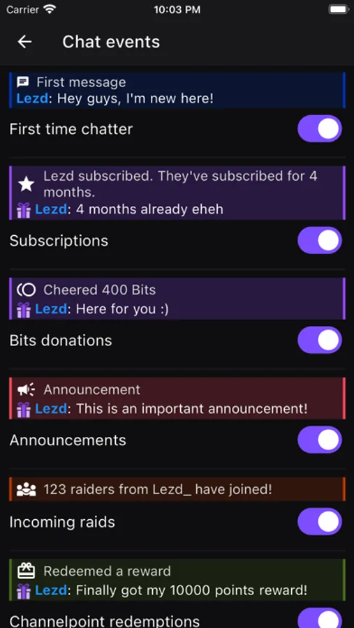 - StreamElements events