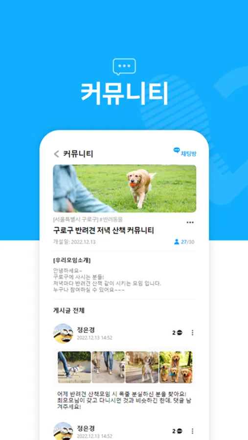• 같은 관심사를 가진 사람들, 주변에 사는 이웃들을 만날 수 있는 소모임 공간.