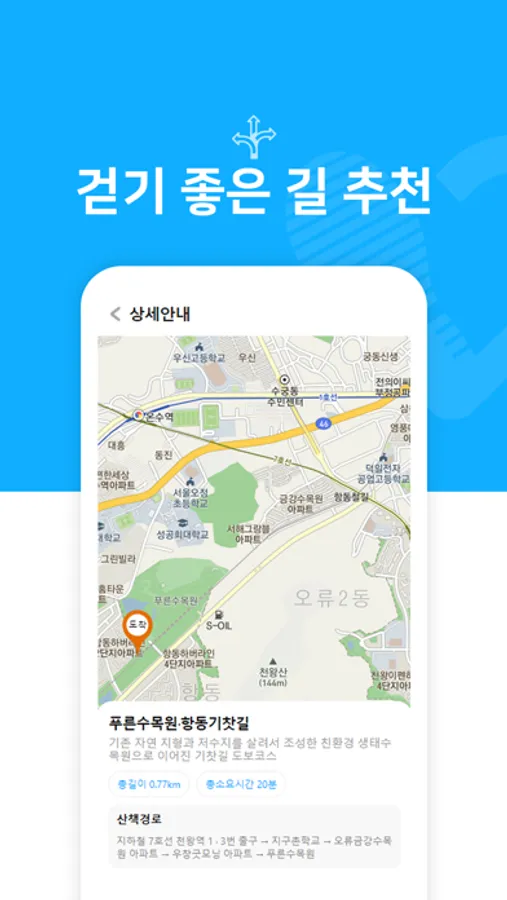 • 전국 각지 다양한 걷기 명소들을 추천하고, 경로 안내까지 해드립니다.