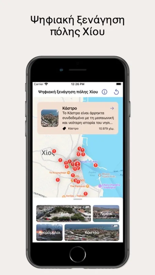 Η εφαρμογή είναι ένας ψηφιακός οδηγός, όπου κάθε επισκέπτης ξεκινάει μία περιήγηση στο κέντρο της πόλης. Η περιήγηση περιλαμβάνει πλούσιο πληροφοριακό και φωτογραφικό υλικό, ηχητικές αφηγήσεις και αεροκινηματογραφήσεις του κέντρου.
