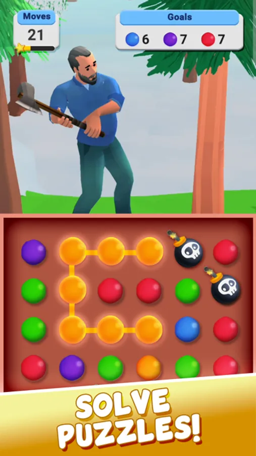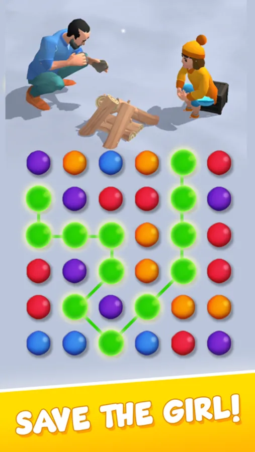 Every move counts as you connect colorful matching dots to complete essential tasks to try and help them survive. Link the same colored bubbles to cut wood for shelter, start fires to keep warm, mine stones for tools, go fishing for food, and much more. Each brain teaser level is a critical step and will determine their fate in the wild!