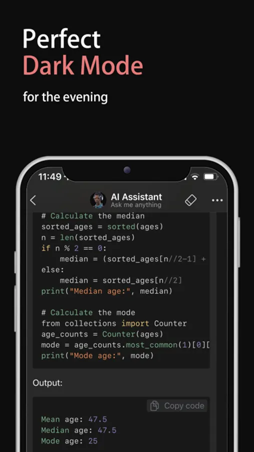 Use markdown formatting, including tables and lists, for easy-to-read conversations and switch to dark mode for a more comfortable viewing experience.