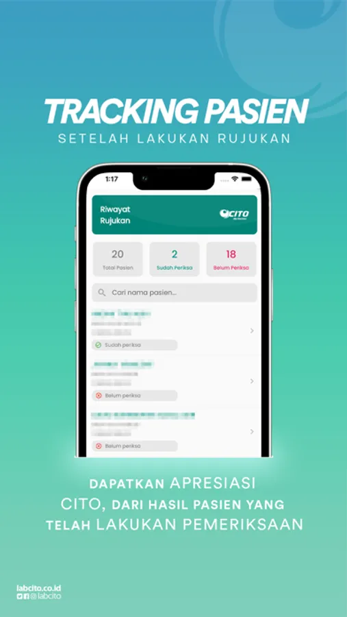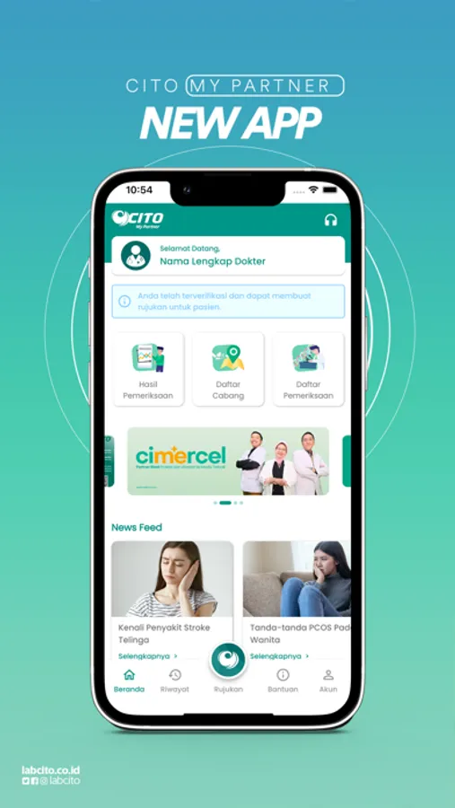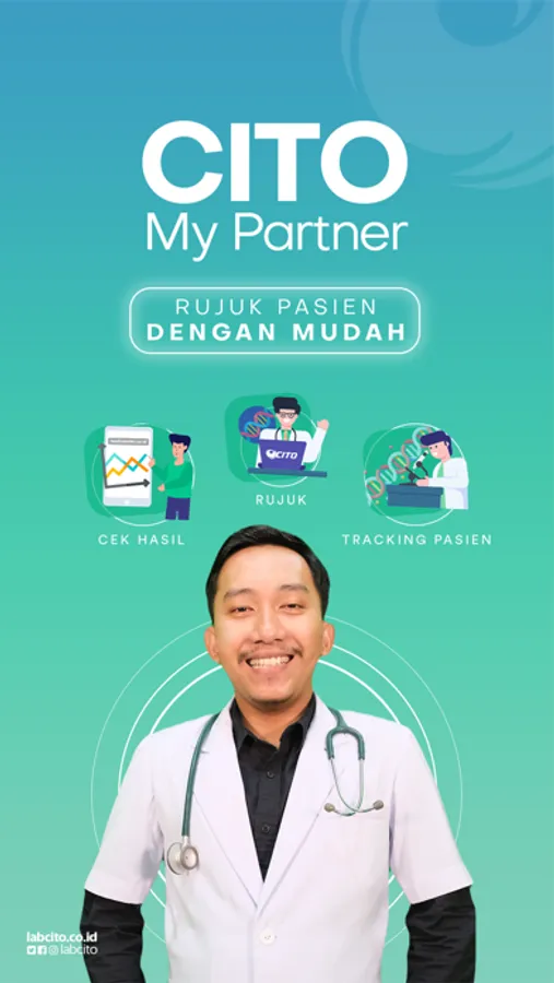 Cito My Partner memfasilitasi dokter untuk mengirim rujukan pemeriksaan laboratorium dan melihat hasil pemeriksaan laboratorium dari pasien. Dokter juga dapat memantau proses rujukan pemeriksaan laboratorium pasien yang telah dikirimkan.