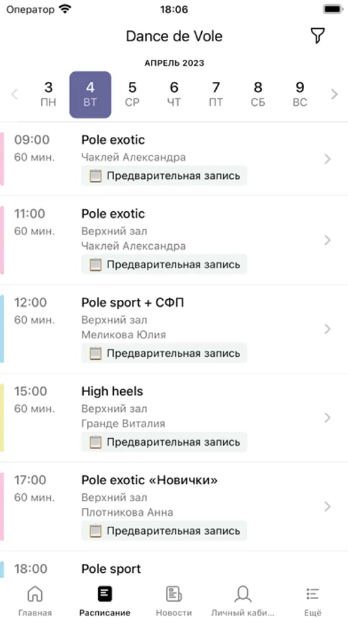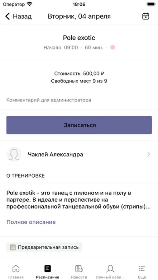 С помощью приложения вы можете записываться на тренировки, следить за новостями, расписанием занятий, оперативно получать информацию об изменениях в расписании и специальных предложениях.