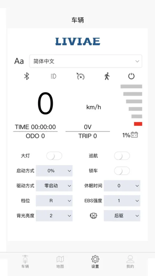 My-Trip是一款蓝牙电动车APP,是通过蓝牙进行通讯的,连接对应的蓝牙,可以对车辆进行一些设置,比如控制车辆的大灯,控制车辆的驱动模式,对车辆进行开锁,解锁,以及其他的一些参数设置,详细功能参考APP设置页面功能。