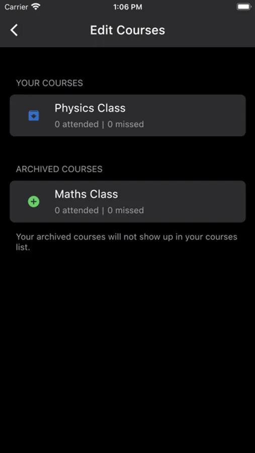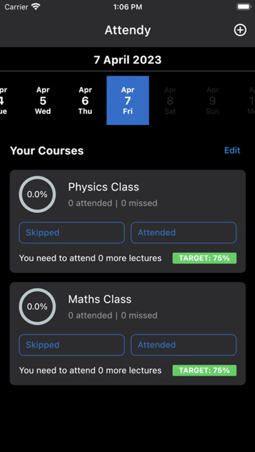 Attendy helps you track your attendance so you don’t have to worry on how many classes you can miss or need to attend.