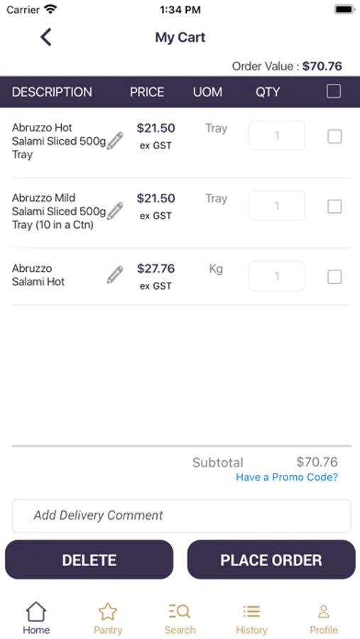 You can quickly and easily select your pantry lists, select the items you want and place an order in seconds. Use our pantry list, or create your very own. We’ve also included the convenience of re-ordering from your previous orders.
