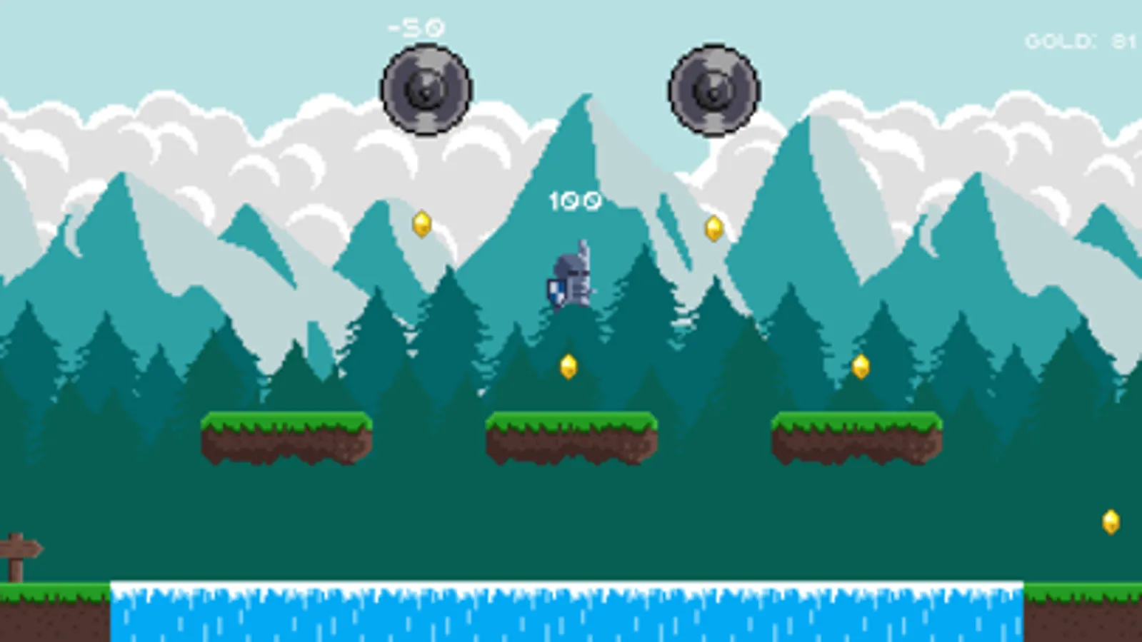 Сollect gold coins while passing levels and use them to improve the Knight's health and power of attack. As the knight becomes stronger and he can easily overcome the obstacles and defeat bosses.