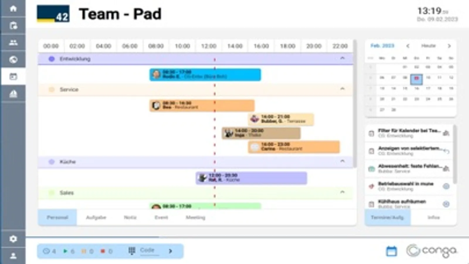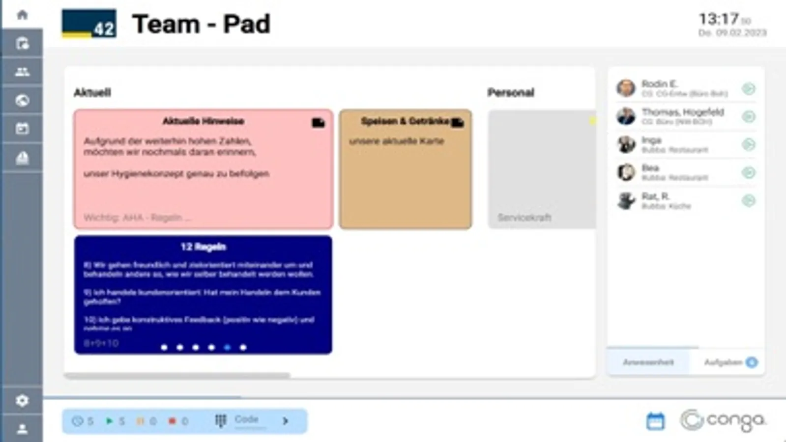 und automatisch. Als Infoboard ersetzt Conga Time das klassische Schwarze Brett:
