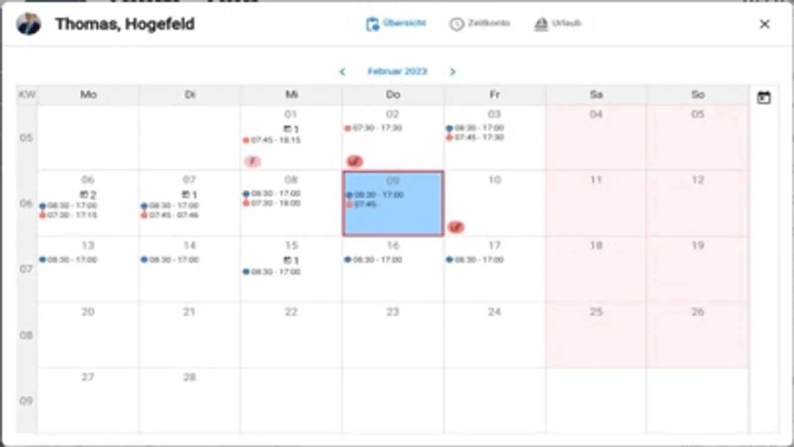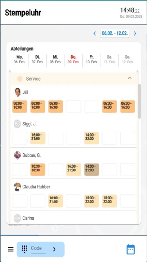 Zeiterfassung mit Dienstplan und Anzeige allgemeiner Informationen und persönlicher