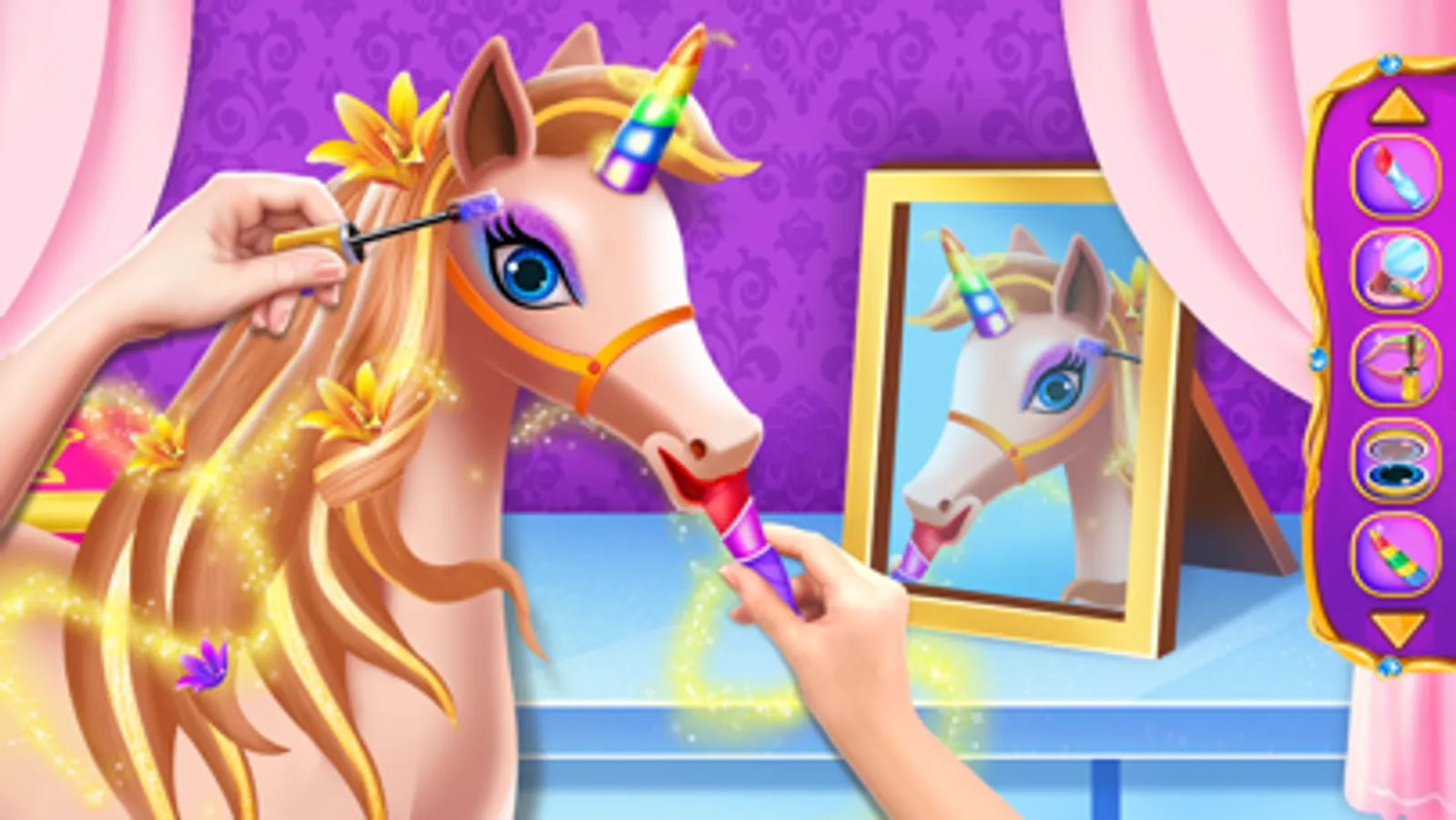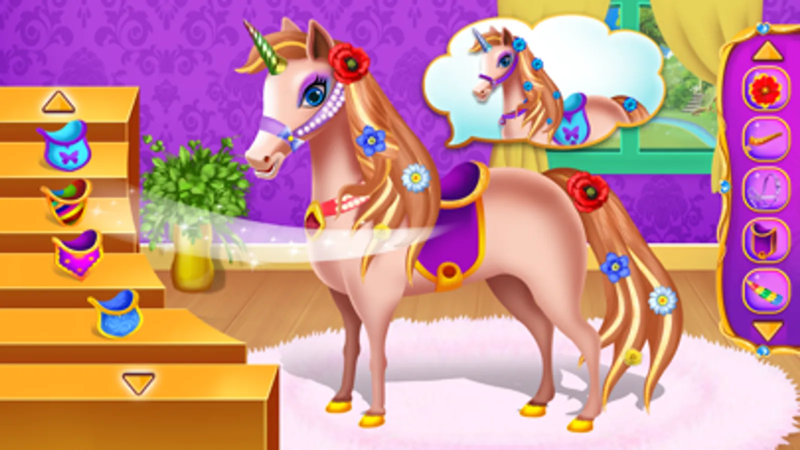 Meet our tooth fairy princess who is waiting for a caretaker who takes good care in Virtual Pet Care: Horse Games and make horse racing stars in your adventure on horseback in this free game for kids. Horse farm cleaning stables Take care of unicorns and baby ponies. Until you get to the magical farm, you can imagine: the horse school. Princess barber castle cute animal pet hotel or horse city with wild horse rides.