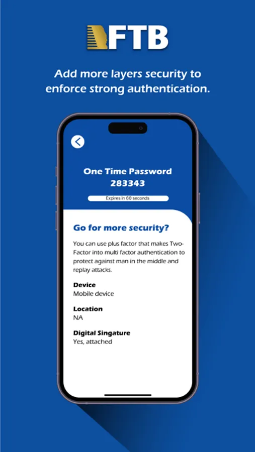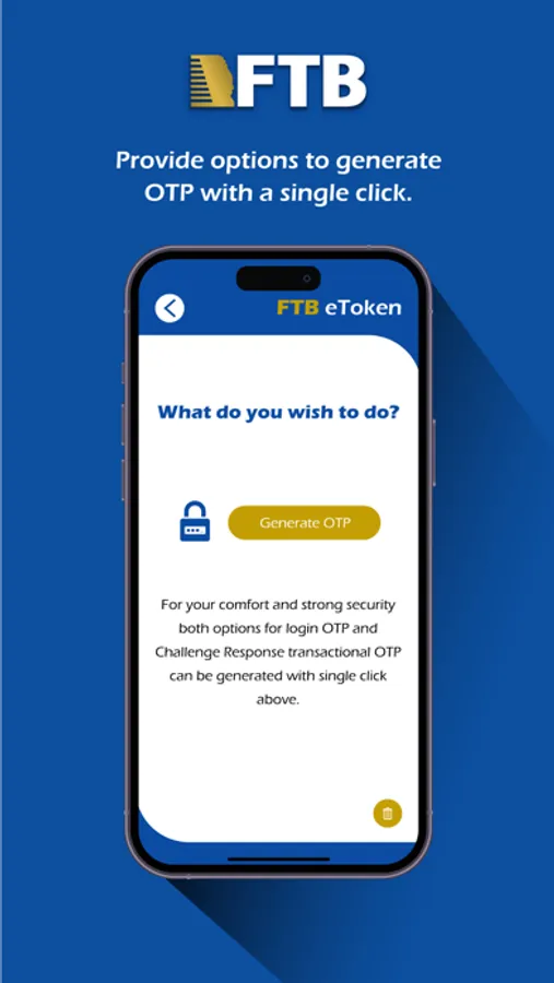 FTB eToken App is comprehensive identity password management and strong multi-factor-authentication platform that provides a centralized set of services across multiple service channels and business units.