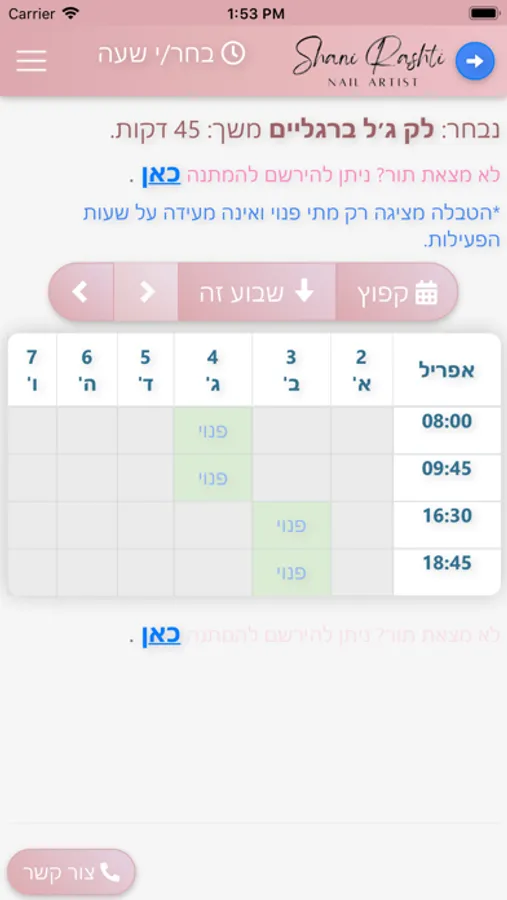 באפליקציה אפשר לקבוע תור, לנווט באמצעות Waze ולפנות אליי באמצעות WhatsApp.