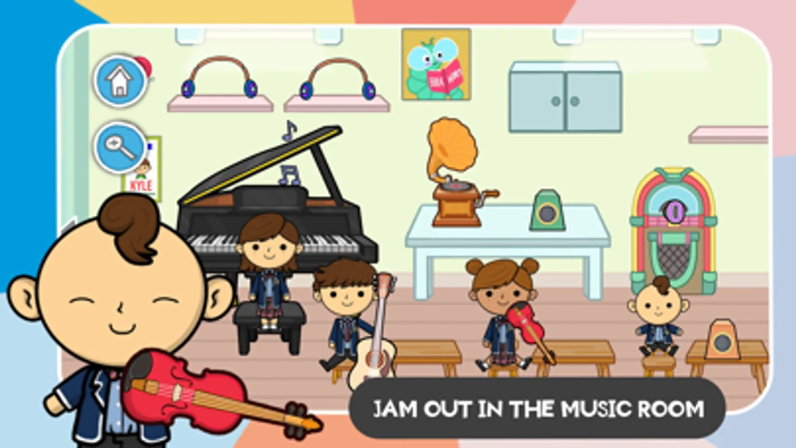 Explore the classrooms in Lila's World, each with its own unique style and learning experience. Attend chemistry class and mix chemicals to create a chemical reaction. Learn how to play the piano, guitar, and drums in music class. Discover the wonders of the universe in astronomy class.