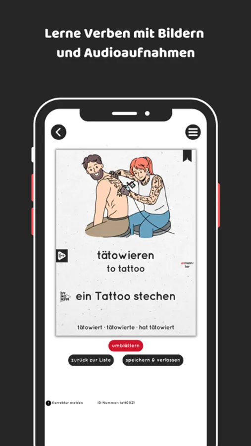 Diese App ist für alle, die Deutsch lernen möchten. Mit Bildern, Audioaufnahmen und Beispielsätzen können Sie die deutsche Verben leicht und spielerisch lernen.