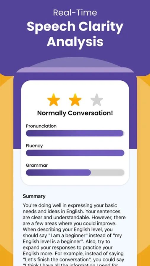 • Track your learning trends and aim for your best daily English fluency score. Perfect your pronunciation and beat your weekly goals.
