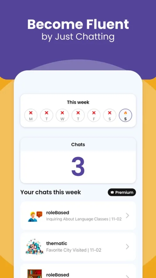 • Thematic chat: Choose topics that interest you and chat away! Receive real-time corrections to sharpen your skills.