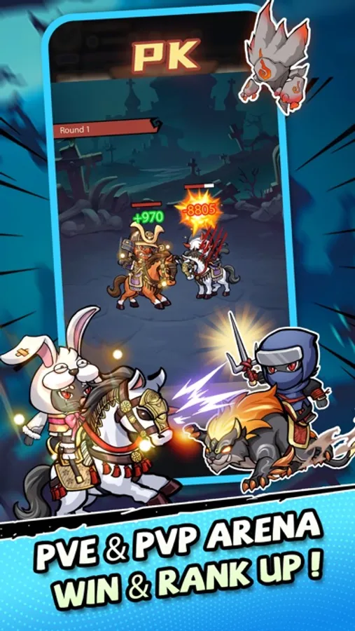 Ninja Cat - Idle Arena is an Idle RPG that combines elements of arena battles and online idle RPG games. It boasts an excellent item system, with hundreds of equipment, mounts, and weapons available at different levels.