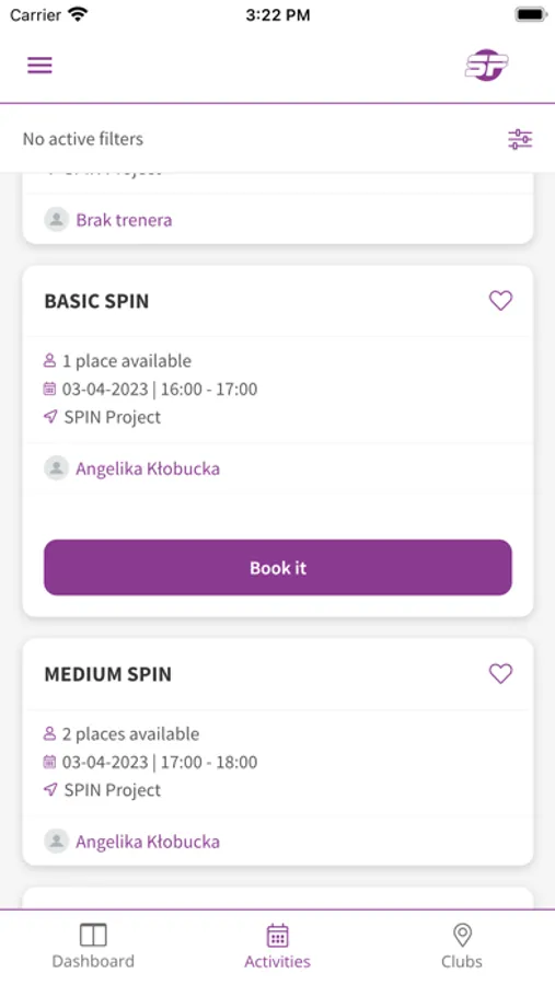 Uzyskaj stały wgląd do swojego profilu w klubie. Dzięki aplikacji ‘Spin Project’, możesz w każdej chwili: