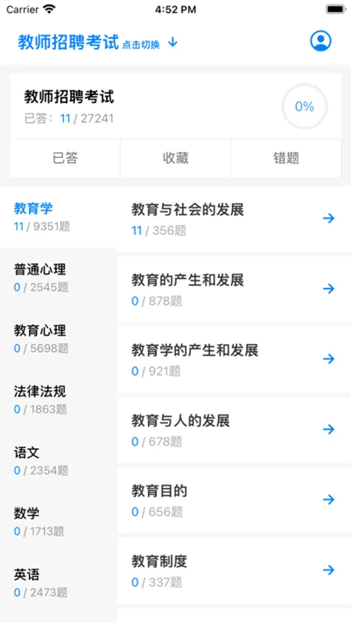 主要包含教师招聘考试和教师资格证考试题库。教育综合知识点众多,覆盖面广。