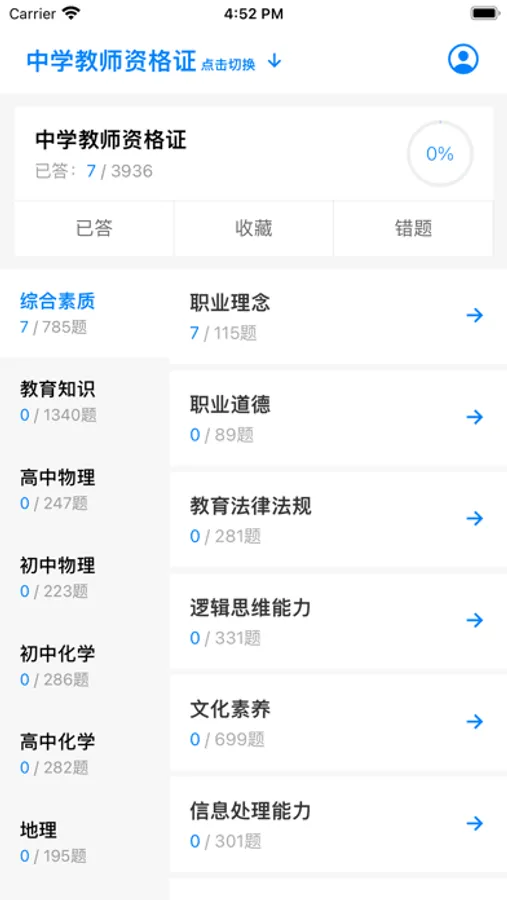 适用全国所有省份教师类考试,历年试题汇总,海量模拟题检测实力,答案全解析,错题记录,查漏补缺,助您掌握做题节奏。